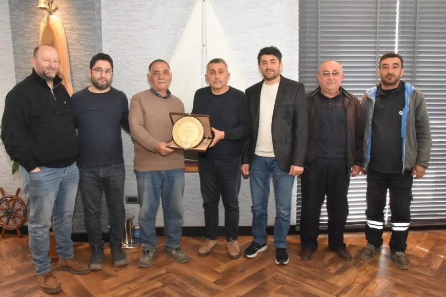 İş yerlerinde gerçekleştirilen plaket takdimine Dernek Başkanı İshak Yılmaz’ın yanı sıra, Başkan Vekili ve Mali İşlerden Sorumlu Ender Yıldırım, Proje ve Yatırımlardan Sorumlu Başkan Yardımcısı Nejat Aslan, Danışma Kurulu Üyesi Ahmet Çelik ile Akın Medya Haberler Koordinatörü Abdulkadir Akın da katıldı.