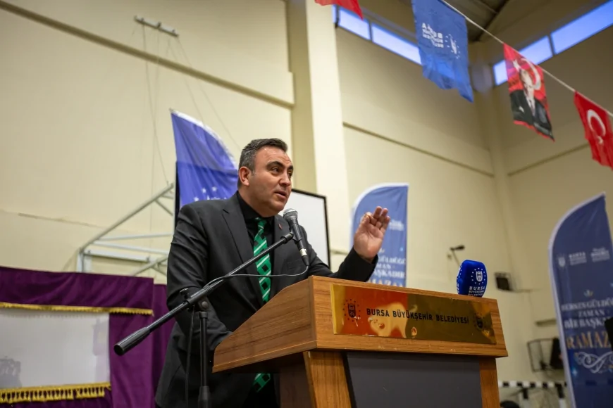 Bursa Büyükşehir Belediyesi Başkanvekili Mehmet Aydın Saldız, Büyükşehir Belediye Başkanı Mustafa Bozbey’in selamlarını ileterek Ramazan ayının hayırlı olmasını diledi. Birliğin, beraberliğin ve dayanışmanın en güzel yaşandığı aylardan olan Ramazan ilçeye ve Bursa’ya huzur ve bereket getirmesini dileyen Saldız, oruç tutmanın sadece aç kalmak olmadığını, yalan söylememek, iftira atmamak, hakka ve hukuka riayet etmek demek olduğunu da vurguladı.